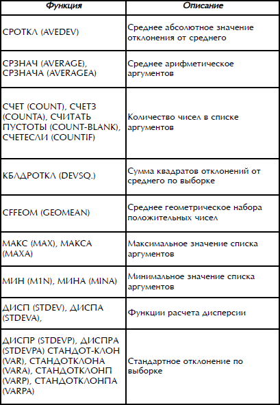 • Статистические (Statistical) – функции для расчета среднего значения, дисперсии, статистических распределений и других вероятностных характеристик.