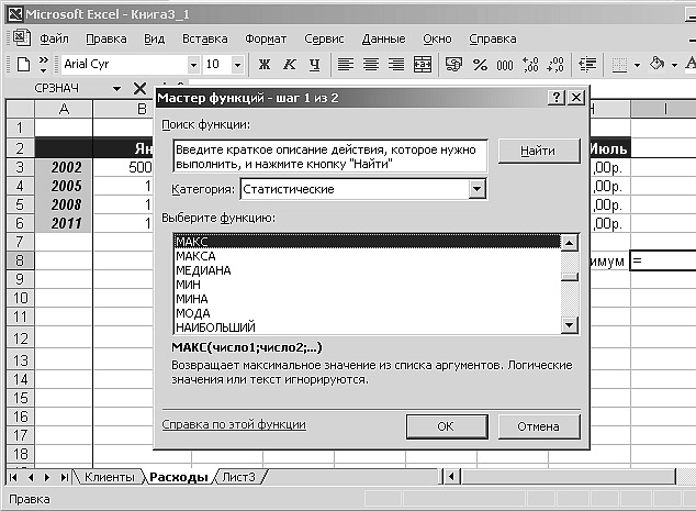 1. Выберите в списке Категория окна диалога вставки функций (рис. 3.142) пункт Статистические.