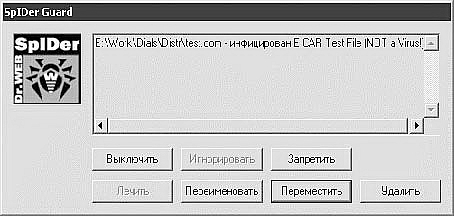 В случае обнаружения инфекции SpIDer выводит окно, в котором содержится путь к инфицированному объекту (рис. 7.6).
