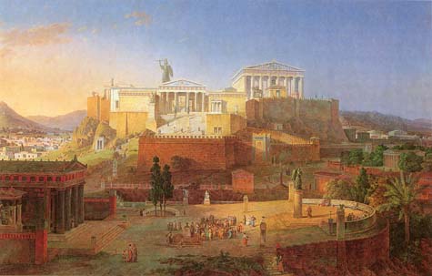 Перед нами картина с видом на Акрополь. Ее написал архитектор Лео фон Кпенце (1784–1864) через два года после своего путешествия в Грецию в 1834 г.