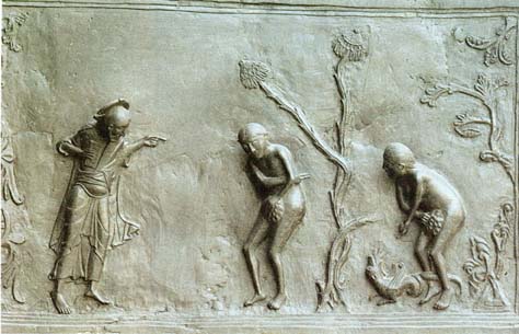 Этот небольшой рельеф на двери должен был служить доказательством, что мужчина лучше женщины и имеет право повелевать ею. В свое время подобными доказательствами являлись также таблички со сводами законов Хаммурапи в Вавилоне (рис. 27), римская статуя императора Августа (рис. 61) или мозаичные изображения Юстиниана и Феодоры в Равенне (рис. 84, 85). Изображения должны были убеждать, что женщина несет большую ответственность, чем мужчина, за происходящие в мире несчастья. И люди в течение долгого времени верили, что так оно и было на самом деле.