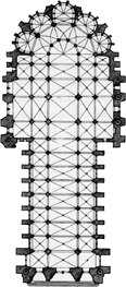 Рис. 114. Схематический план кафедрального собора в Реймсе позволяет понять различие его с собором в Шпайере. Кафедральный собор строился ровно сто лет — с 1211 по 1311 г.