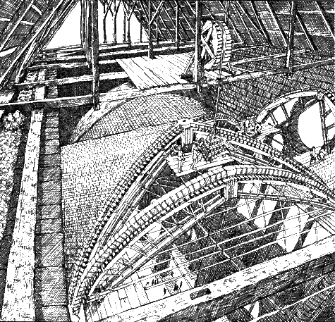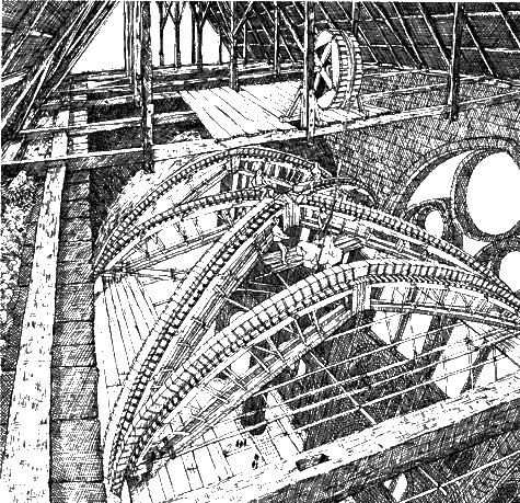 Рис. 115, 116. Возведение собора на разных этапах Дэвид Макалуэй запечатлел в рисунках и сопроводил точным описанием хода работ.