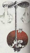 В 1860 году появился рисунок, на котором некий господин в очках, в жилетке и с засученными рукавами, сидя на баллоне сжатого газа, парил в небе, управляя странной рамой с двумя пропеллерами наверху, из которых вырывались реактивные струи. И это, конечно, не проект и даже не игрушка, а просто карикатура, высмеивающая энтузиастов, конструирующих аппараты тяжелее воздуха.