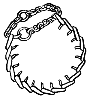Строгий, или коралловый ошейник, он же парфорс, может быть проволочным и состоять из металлических пластин. Его используют редко и только в качестве «метательной цепи» – швыряют в собаку, когда она предпринимает попытки нежелательных действий. При воспитании собак многих пород такой ошейник необязателен, а для щенков и вовсе не годится – может вызвать у них панический страх.