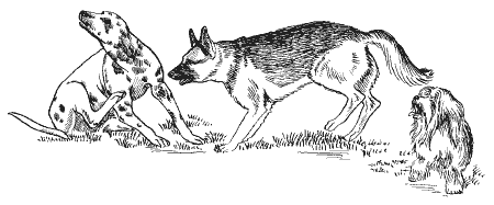По завершении прогулки щенку полезно минут пятнадцать пообщаться с себе подобными. Во время таких контактов молодые собаки учатся понимать язык мимических и пантомимических поз и движений своих собратьев, в играх обучаются правилам и технике самообороны, а иногда и подражают более взрослым собакам. Если исключить контакты щенка с себе подобными, то, взрослея, такая собака станет либо очень агрессивной, либо трусливой, в зависимости от особенностей ее нервной системы и иерархического положения в семье. Даже если таких крайних вариантов поведения и не отмечается, она все-таки с трудом понимает общепринятый собачий язык.
