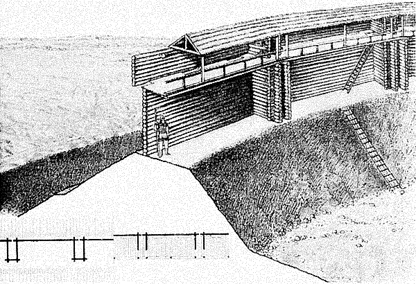 Оборонительные валы насыпали, как правило, не на самом краю рва. Чтобы предотвратить осыпание вала в ров, в основании вала почти всегда оставляли горизонтальную площадку-берму шириной около 1 м.