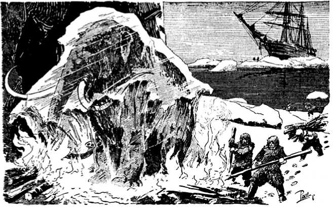 Да, это был мамонт. Мои матросы собрались уже высвобождать животное изо льда топорами, но я запретил им это, боясь, чтобы они не попортили шкуру. Лед медленно стаивал, и наконец, великан высвободился из его оболочки.