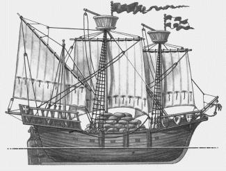 Водоизмещение этого монстра – около 4,5 тысячи тонн, а грузоподъемность 3 тысячи тонн! Возможно, и вправду было построено такое судно, но было оно уникальным. В Испании в самом конце XV века смогли построить галион водоизмещением в 2 тысячи тонн и обнаружили, что такая громадина, несмотря на хорошую вместимость, не выдерживает морских походов. Идти круто к ветру, в бейдевинд, галион мог лишь с большим трудом: мешал избыточный надводный борт, ловивший ветер как парус; только этим парусом было нельзя управлять.