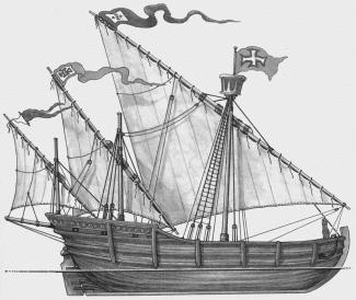 Но как бы там ни было, мореплаватель отправился в путь 3 августа 1492 года на трех каравеллах. «Санта-Мария» (флагман) была длиной 23 м, шириной 6,7 м, имела осадку 2,8 м. Парусное вооружение «комбинированное» – фок-мачта как у холька, грот-мачта как