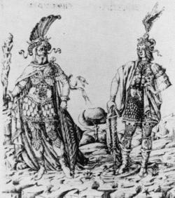 Мазо Финигуэрра. Агамемнон и Менелай. Иллюстрация к «Всемирной хронике», XV век.