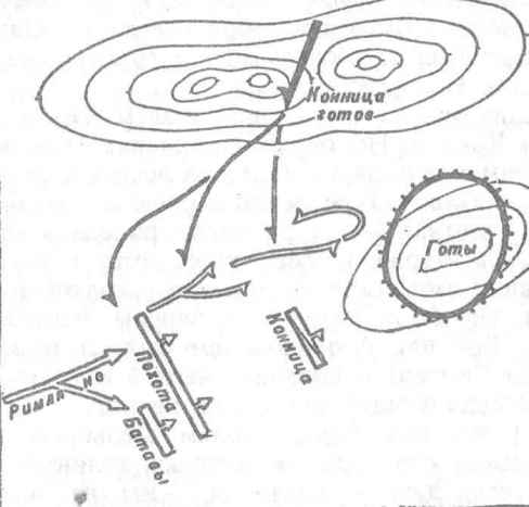 В это время двинулись вперед находившиеся на фланге конница Помпея и легко вооруженная пехота, под натиском которых конница Цезаря стала отходить.