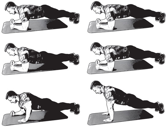 Вернитесь в исходное положение и, перенеся опору с локтевого сустава на запястье, поднимайте тело вверх. Выполните несколько повторений разными руками.