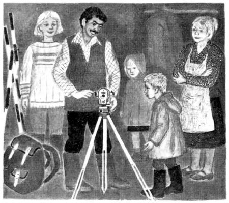 И каменщики стали класть кирпичи. Илюша глядел, стараясь не сморгнуть, чего-нибудь не пропустить. Лопатки быстро расстилали раствор, кирпичи ложились ровнёхонько, легко, будто в них и весу не было, такие они стали послушные в умелых руках. И стены росли прямо на глазах у зрителей — вверх, вверх. Может быть, и много прошло времени, да только никто его не заметил. Так весело шло дело.