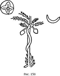 (Эта уловка объясняет последующее заявление Энки. Когда боги обнаружили, что Ной/Утнапишти остался жив, Энки настаивал, что не нарушил клятву, — «наимудрейший» из людей сам раскрыл тайну Потопа, верно интерпретировав знамения.) На цилиндрических печатях мы сталкиваемся с иллюстрациями этого эпизода: слуга держит ширму, а в это время Эа — в образе бога-змеи — открывает секрет Атрахасису (рис. 160).