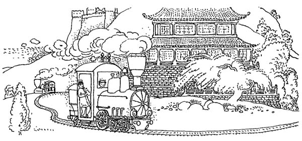 Но больше всего дети любили, когда Джим выезжал на своем прозрачном локомотивчнке, сквозь стенки которого можно было видеть, как горит огонь, как кипит вода, как получается пар. Вечером это выглядело особенно красиво; сумерки, а в кабине машиниста в отблесках пламени стоит Джим в сверкающей короне, а на груди — сияющая звезда.