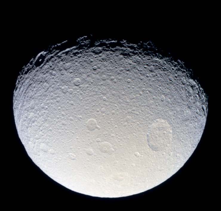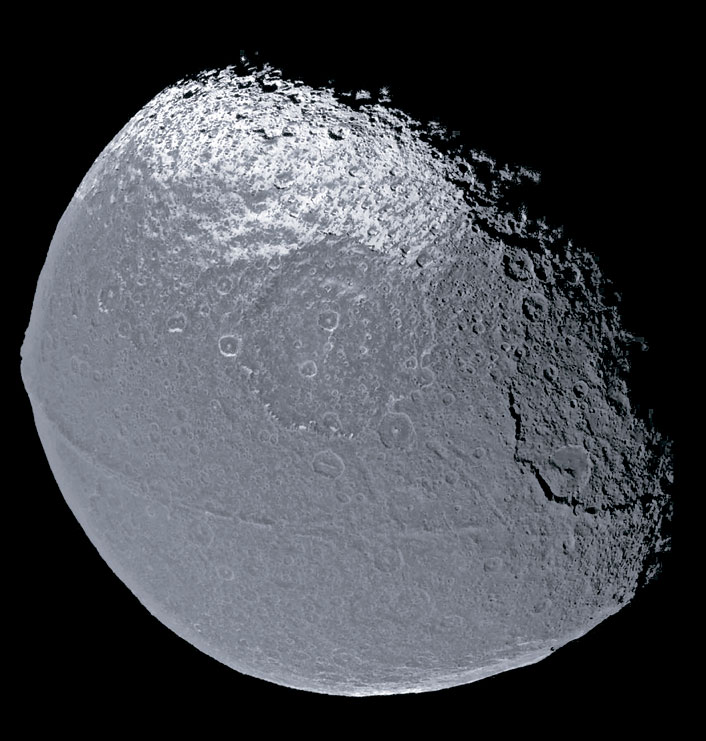Япет – третий по величине спутник Сатурна. Покрытая кратерами область, хорошо видная на фотографии, носит название Область Кассини.