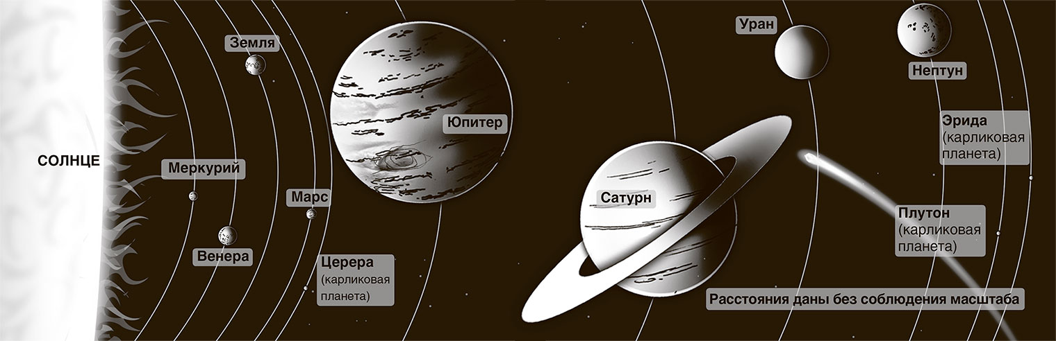 • В неё входят все небесные тела, удерживаемые солнечным притяжением: планеты, карликовые планеты, спутники, кометы, астероиды и другие малые объекты, ещё не известные человечеству. Когда небесное тело притягивается к Солнцу, говорят, что оно обращается по орбите вокруг Солнца. Ближайшая к Солнцу планета – Меркурий.