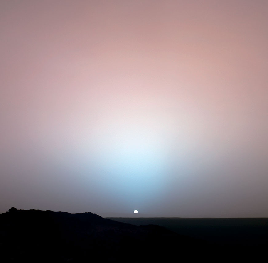 Закат на Марсе. Снимок сделан марсоходом «Спирит» 19 мая 2005 года.