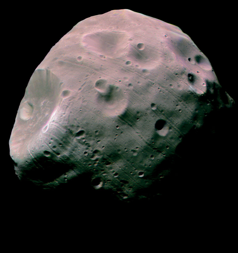 Спутники Марса слишком малы, чтобы иметь круглую форму. Это Фобос: он больше по размерам и расположен ближе к Марсу.