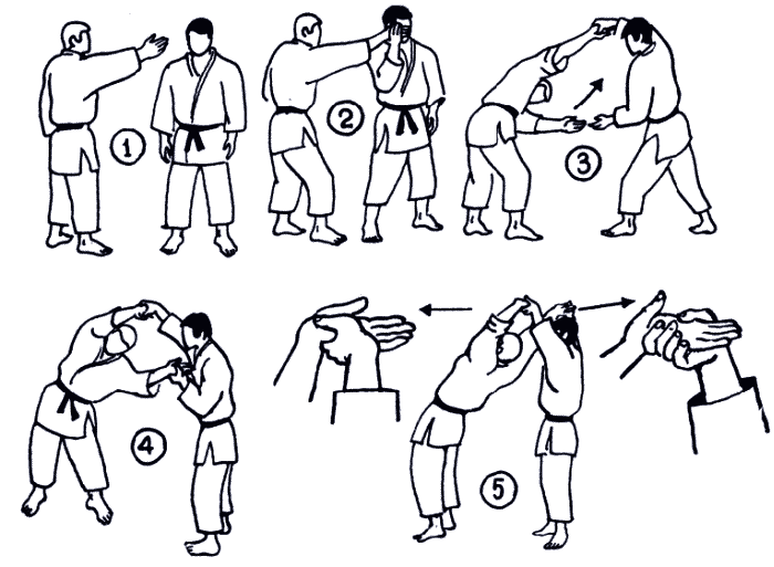 Основным элементом, влияющим на качество выполнения этих бросков, является максимальное отворачивание своей головы в сторону будущего падения противника и далее.