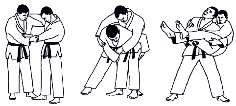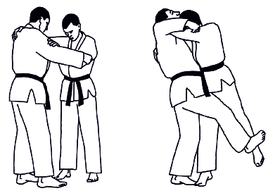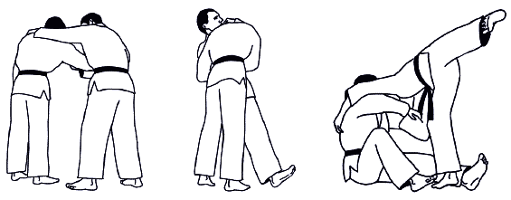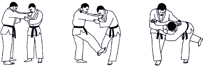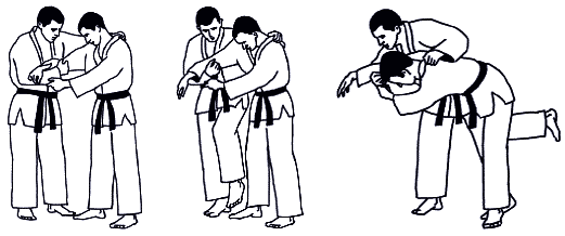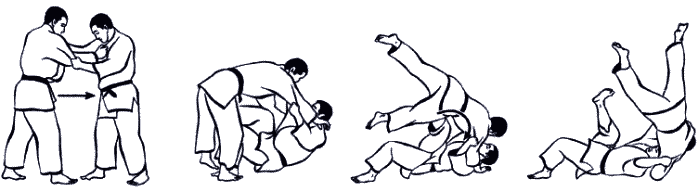 Рис. D-1. Запрокидывание подсадом (Усиро-госи – обратное подбивание)