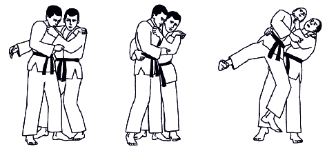 Рис. D-5. Запрокидывание рывком разноименной ноги изнутри (при разноименной стойке)