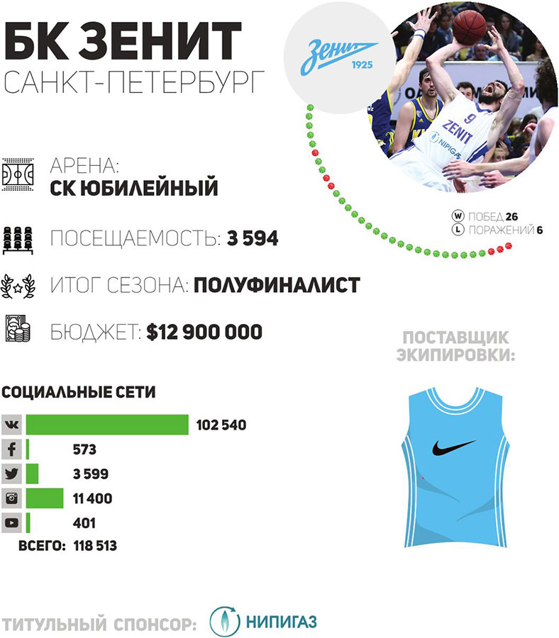 Баскетбольная команда существует не так долго. Минувший сезон стал самым успешным в истории баскетбольной команды «Зенит». Мы установили рекорд Единой лиги ВТБ по длительности беспроигрышной серии (20 побед подряд!), заняли второе место по результатам регулярного чемпионата и третье по итогам плей-офф и оступились всего в одном шаге от выхода в финал и путевки в Евролигу. Но самое главное, в этом сезоне наша команда прочно укрепила свои позиции в числе лидеров российского баскетбола. Наши футболисты уже были чемпионами, а нам еще предстоит долгий путь до этого. Для города и клуба это будет оченьздорово.