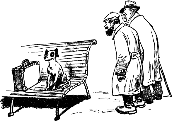 — А все-таки неосторожный человек ее хозяин, — сказал мужчина в кепке, обрадованный неожиданным развлечением. — Разве можно уходить и оставлять вещи на собак! Бросить ей кусок хлеба — она не заметит, как и скамейку-то вместе с чемоданом унесут.