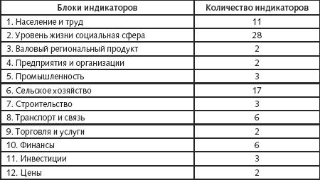 Количество индикаторов социально-экономического развития регионов по структурным блокам