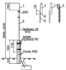 1 – молниеприемник; 2 – токоотвод; 3 – заземлитель; 4 – молниеприемник из трубы; 5 – сварка; 6 – молниеотвод; 7 – молниеприемник из уголка; 8 – молниеприемник из проволоки сечением 6-10 мм