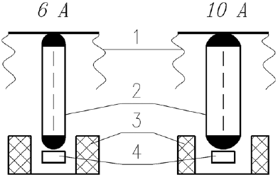 Рис. 18. Размещение плавких вставок в предохранителе:
