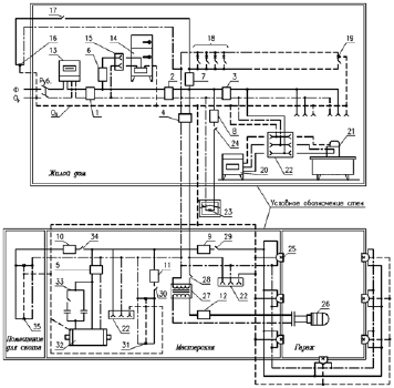 Рис. 1. Электросхема жилого дома и блока хозяйственных построек: