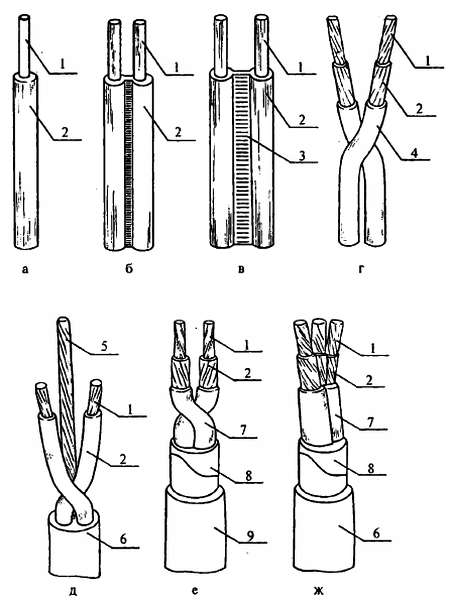 — ДПРГ — двужильный гибкий провод, сделанный так же из меди и помещенный в резиновую или хлопчатобумажную изоляцию;