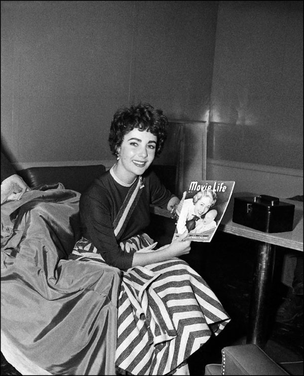 Актриса держит в руках журнал «Movie Life», где опубликована статья о ней. 18 февраля 1952 года