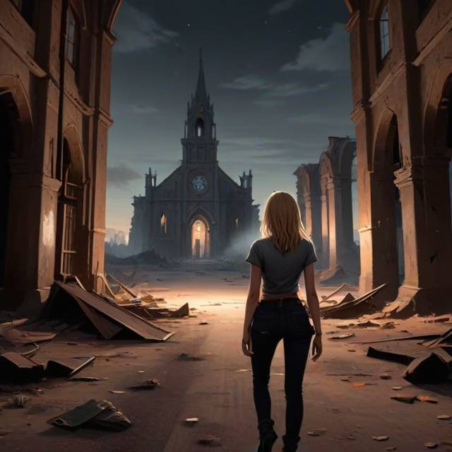 Придя в церковь, девушка распахнула дверь и вошла внутрь. За рядами скамеек она увидела Аринэль всё в той же больничной одежде, стоящую рядом с чёрными обелиском, покрытым извилистыми узорами.