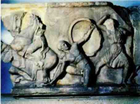 Голова раненого воина из храма Афины Алеи в Тегее показывает Скопаса глубинным реформатором концепции Фидия. Под его резцом прежде прекрасная форма искажается: страдание делает человека некрасивым, обезображивает