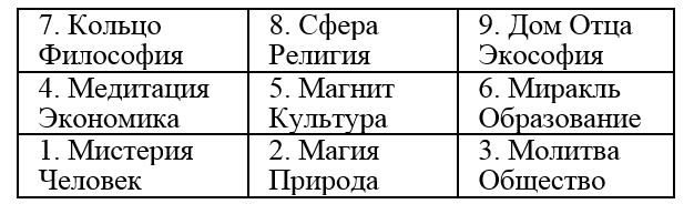 Следующая матрица. Помните, мы на прошлой ступени изучали Смыслы Бытия? А теперь рисуем знаменитую 9-ку.