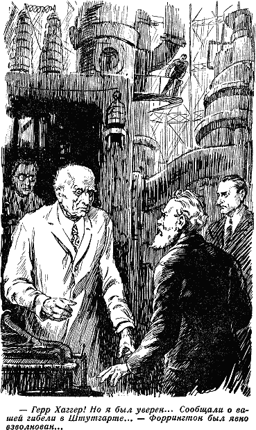 – Должен признаться, сэр Артур, что я использовал ваши советы не совсем так, как вначале предполагал я сам. С помощью господина Хаггера я изменил углы магнитных полей и последовательность их включения. Я получил скорости движения обрабатываемых масс, близкие к скорости света. Мы, как вы понимаете, не пошли на риск. Правда, мы были предупреждены катастрофами в Рикфорде и Майдлтоне! – Макнилл улыбнулся. Хаггер сидел угловатый, неподвижный, как инертная масса.