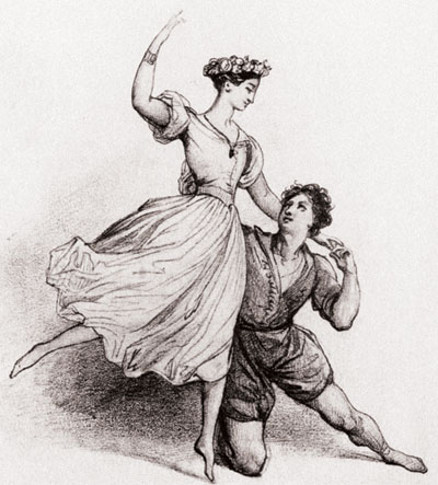 Мария Тальони (1804–1884) была дочерью итальянского танцовщика и балетмейстера Филиппо Тальони и Анны Кирстен, дочери знаменитого шведского артиста. Будущая звезда балета родилась в Стокгольме. Танцам училась в Париже. Ее отец был первым танцовщиком в театрах Флоренции, Венеции и Милана, а в 1802–1805 годах – первым танцовщиком Королевской оперы в Стокгольме. Его считают одним из родоначальников романтизма в балете. Он первым применил танец на пуантах.