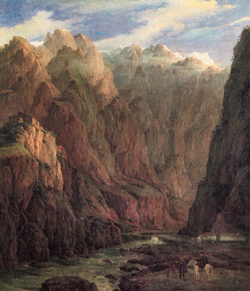 Вдали – кавказские громады:К ним путь открыт. Пробилась браньЗа их естественную граньЧрез их опасные преграды…описывают именно Дарьяльское ущелье, которое называли «Воротами Кавказа» (Аланскими воротами). По дну ущелья протекает река Терек. На протяжении нескольких километров над руслом реки возвышаются скалы высотой до тысячи метров. По Дарьяльскому ущелью проходит Военно-Грузинская дорога.