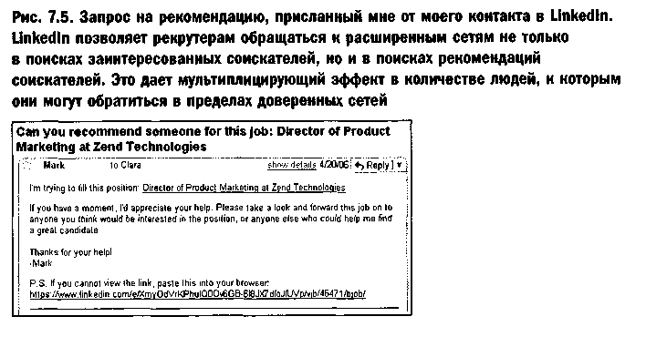 Иногда членство и доступ к таким группам ограничен, но в целом это явление нечастое. Несколько рекрутеров, с которыми я беседовала в ходе подготовки этой главы, говорили, что им никогда не отказывали во вступлении в такие группы. Вступив в группу, рекрутер может размещать сообщения, просматривать профили участников и обращаться к тем, кого он отобрал.