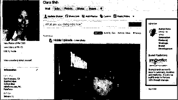 Как говорилось ранее, самых больших успехов добиваются бренды, которые работают с уже ставшими популярными приложениями, а не те, кто пытается разработать свои собственные. Очень трудно спрогнозировать, как будет принято новое приложение. Если вы хотите сделать существенную спонсорскую инвестицию, вы можете обратиться к разработчикам лучших приложений, например к RockYou, Slide или Zynga, чтобы разместить рекламу в их приложениях {рис. 9.7).