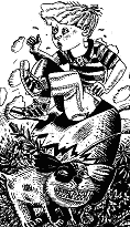 Ваги портфеля з книгами і зошитами Ваня спочатку не відчував. Не чув од хвилювання і землі під ногами. “Сплять ще, лайдаки… — думав про дружків. — Хай сплять, хе-хе… Нехай пухнуть од сну, хо-хо! — тішився він. — І Петя Голобородько спить, хі-хі, прицмокує спросоння губами. Ото кусатиме лікті, коли побачить, що я приволік до школи!”