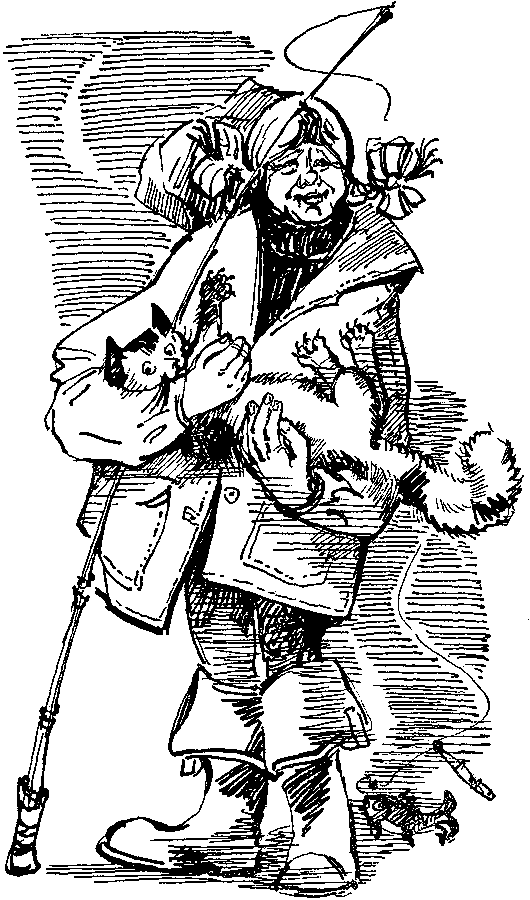 Пока эта милая Людмила и дед Игнатий Савельевич помогали тёте Ариадне Аркадьевне достичь земли, Кошмар имел время обдумать случившееся. Как всякий хулиган, он категорически не терпел, когда с ним обращались грубо, но зато отчетливо сознавал, что тот, кто с тобой, хулиганом, хотя бы не очень вежлив, сильнее тебя, и с ним лучше не связываться, а надо найти кого-нибудь побеззащитнее. Таких поблизости не было, и Кошмар встретил свою благодетельницу притворно радостным урчанием.
