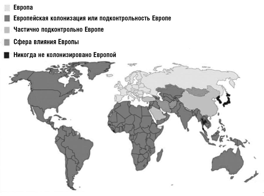 Рис. 2. Европейское завоевание мира (1485 год: около 50 миллионов; 1916 год: около 500 миллионов жителей [соответственно 27 % общемирового населения; 10 % общемирового населения к 2015 году]) [4]
