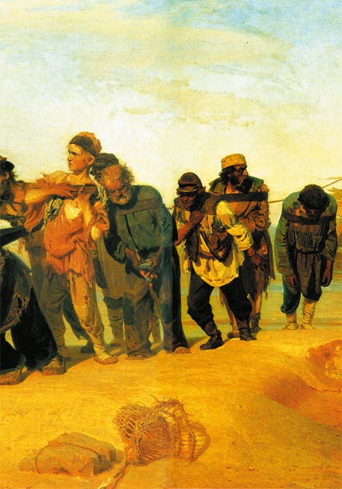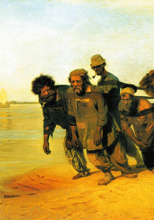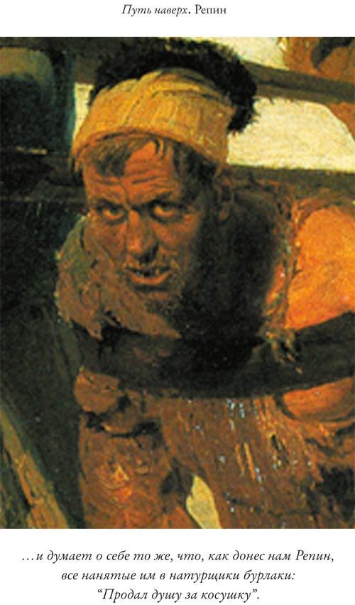 “Будет день – будет хлеб”, – говорят бурлаки у Гиляровского. Ибо “с деньгами издыхать страшно”. Впрочем, это им не грозило, потому что пить они начинали до зари. Какая же может быть воля в скотском рабстве? Об этом нелепо спрашивать, как теперь говорят, офисный планктон. Но те, кто помнят стройотряды, знают об окопном братстве, которое часто сопутствовало их надрывному обиходу. Освобождая от лишнего и сложного, труд обнажает человека до жил, костей и нерастворимого экзистенциального остатка. Однажды я разгружал вагон вместе с отказниками, которых давно не брали на другую работу. Меня навсегда поразило, как быстро и целиком проявилась личность каждого, кто брался со мной за ящик. В труде, как в футболе, сразу видно человека и сколько он стоит. Вот почему бурлаки Репина – всех статей и мастей. И работают они по-разному. Одного лямка смиряет, другого – бесит, третьего – морит, четвертому – не мешает курить, пятому – набивать трубку. Но всех – и это лучшее в картине! – подчиняет общее волновое движение, которое медленно, упорно и верно побеждает течение великой реки, навязывая ей свою волю.