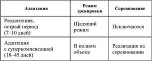 Молодые спортсмены без горного стажа в процессе адаптации более сильно реагируют на тренировочные нагрузки, что удлиняет сроки «острой» акклиматизации. Благоприятно влияют на адаптацию горный стаж и степень подготовленности спортсмена.