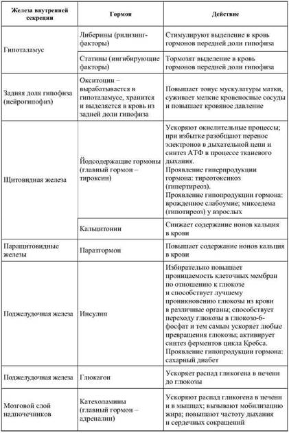Краткая характеристика отдельных гормонов