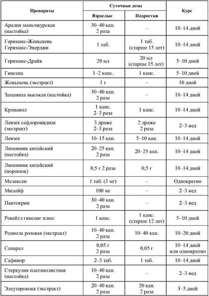 Применение наиболее распространенных адаптогенов